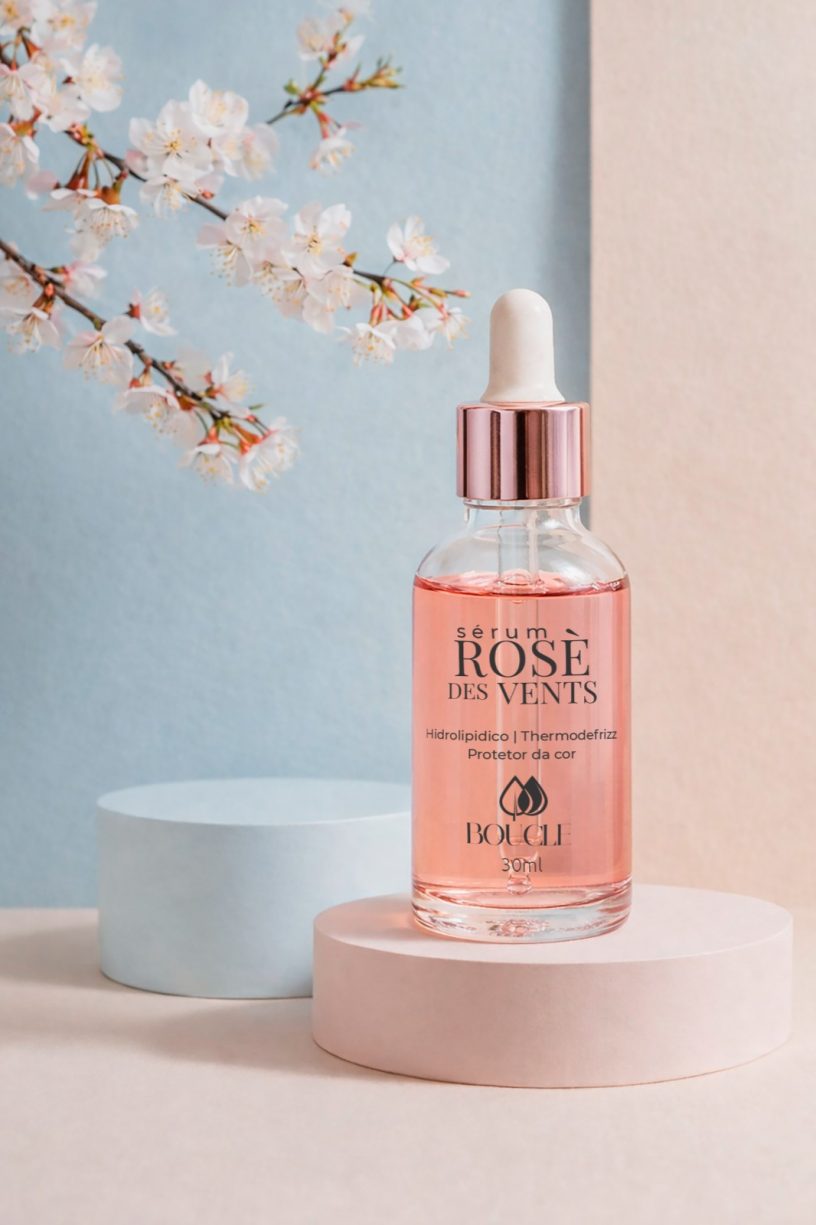 Sérum Hidrolipidico Rosè dês vents foi desenvolvido para restaurar o equilíbrio hídrico e lipídico dos fios ,atuando como barreira protetora que sela cutículas,retendo a umidade.